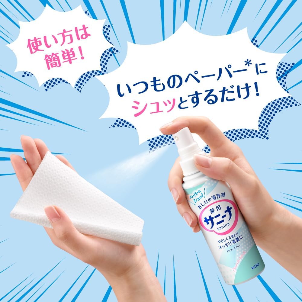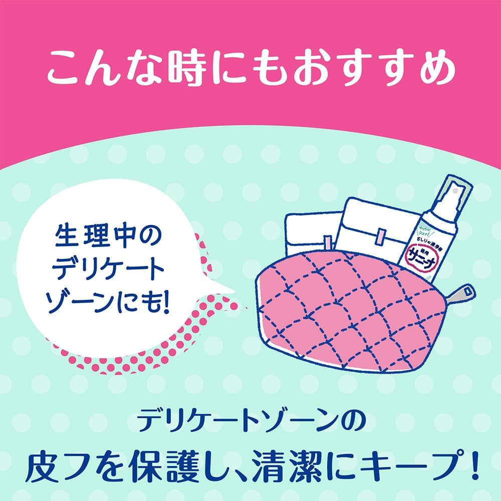 このサニーナ スプレーは、サニーナシリーズの「おしり洗浄剤/清拭剤」のひとつ。水が使えない状況で「拭く/洗う代替」として使える製品です。